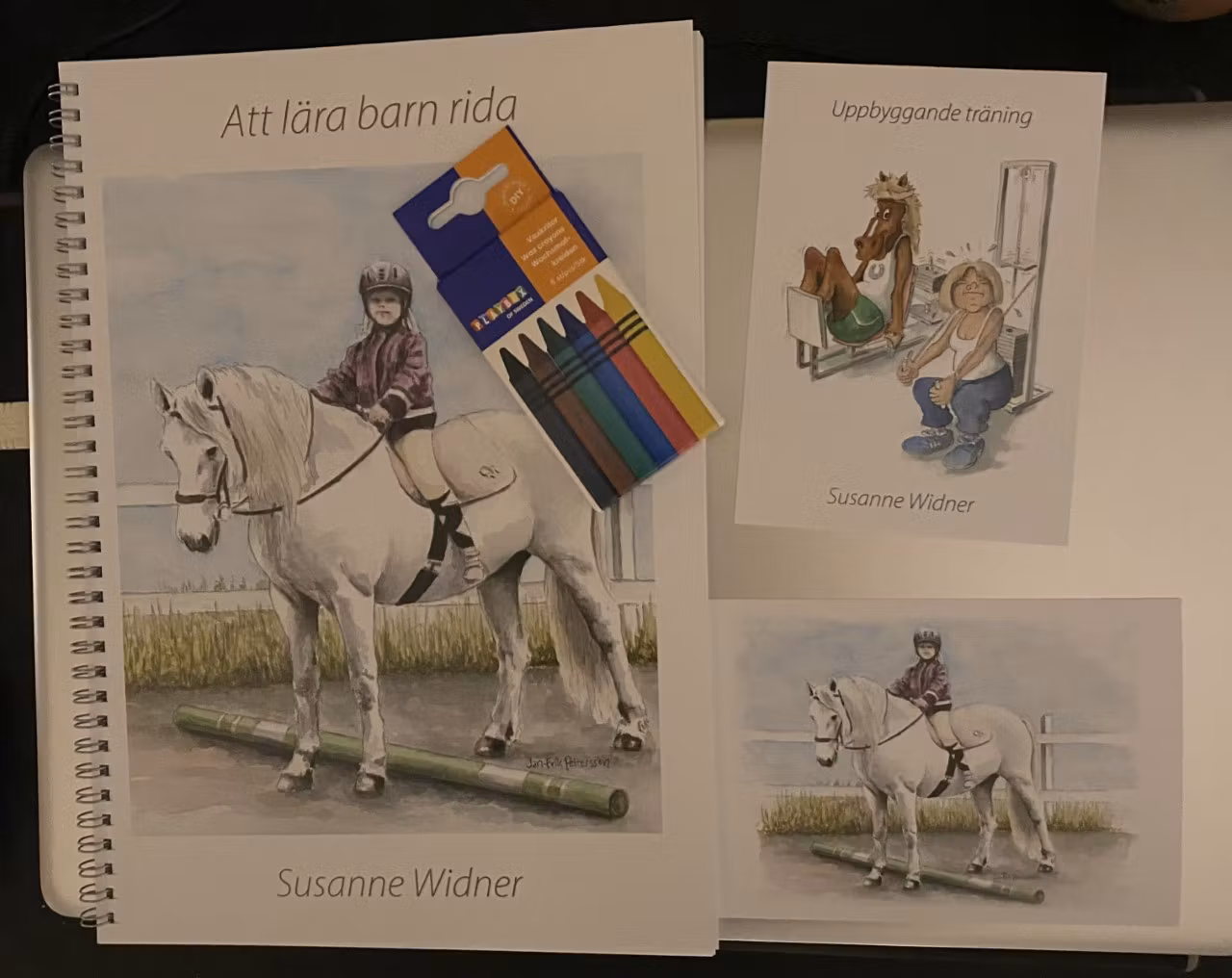 I boken ”Att lära barn rida” kombinerar Susanne Widner sin bakgrund som ridlärare med sitt framgångsrika koncept uppbyggande träning. Hon redogör för hur du som vuxen teamledare kan introducera övningar för barnet, likväl som för hur du kan berätta för barnet om allt från hästens skötsel till dess foderstat. Utöver ett stort antal övningar förklarade i text, innehåller boken också bilder som visar hur övningarna kan utföras. Kanske kan barnet få måla bilderna allt eftersom ni har provat på respektive övning? Susannes mål med denna bok är att den vuxna lär sig om den uppbyggande filosofin för att kunna lära barnet rida rätt från början. Med kärleken till hästen kompletterad med kunskapen om den fyrbenta vännen får barnet en god grund med sig in i hästlivet!